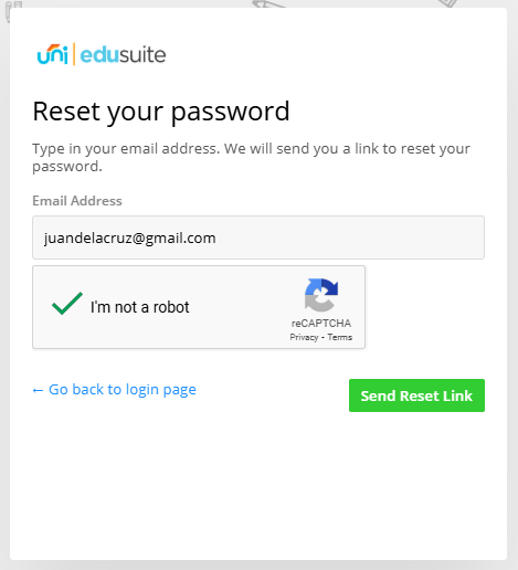 Clicking on the “Go To Edusuite” link brings you to the reset password page